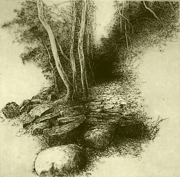 Walter Herzog, Radierung, Ansteigender Weg, 2002, Bildformat 28,0 x 28,5 cm, Papierformat 43,0 x 39,0 cm