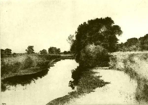 Walter Herzog, Radierung, Große Flussaue, 2004, Bildformat 26,0 x 36,8 cm, Papierformat 39,0 x 48,5 cm
