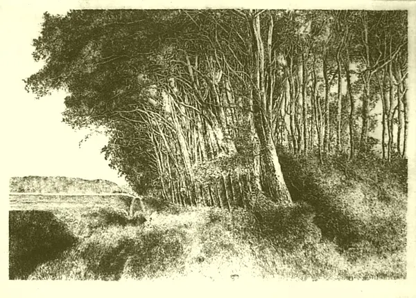 Walter Herzog, Radierung, Großer Strandwald, 2005, Bildformat 27,7 x 38,5 cm, Papierformat 39,5 x 48,5 cm