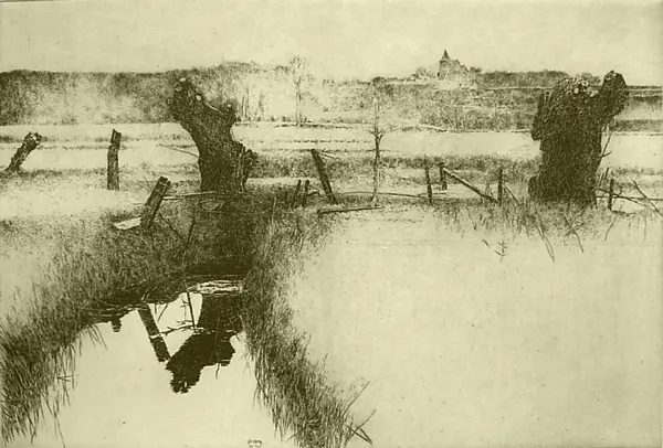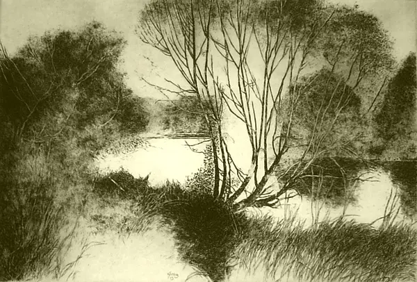 Walter Herzog, Radierung, Elbweide III, 2013, Bildformat 25,2 x 34,7 cm, Papierformat 39,0 x 43,0 cm