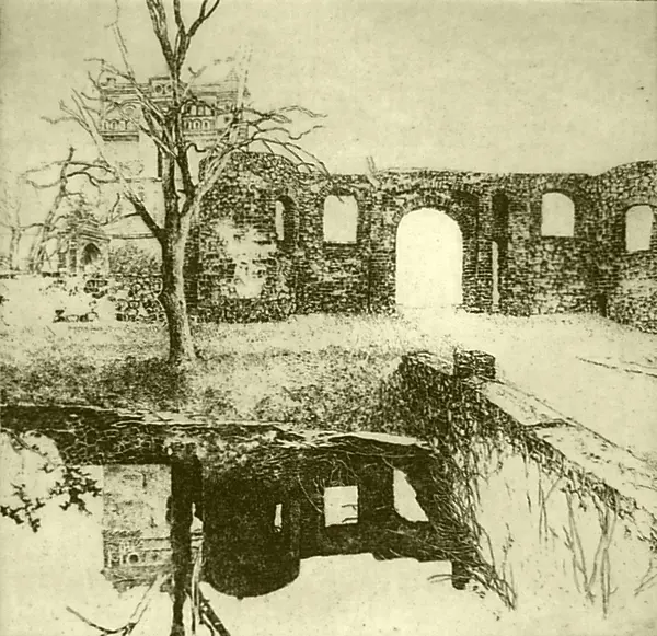 Walter Herzog, Radierung auf Farblithografie, Römische Bäder Sanssouci, 1977, Bildformat 24,2 x 26,5 cm, Papierformat 35,7 x 39,5 cm