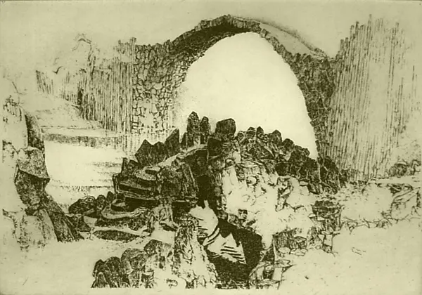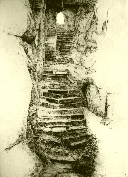 Walter Herzog, Radierung, Mykene-Aufgang, 2012, Bildformat 25,0 x 35,5 cm, Papierformat 39,0 x 49,0 cm