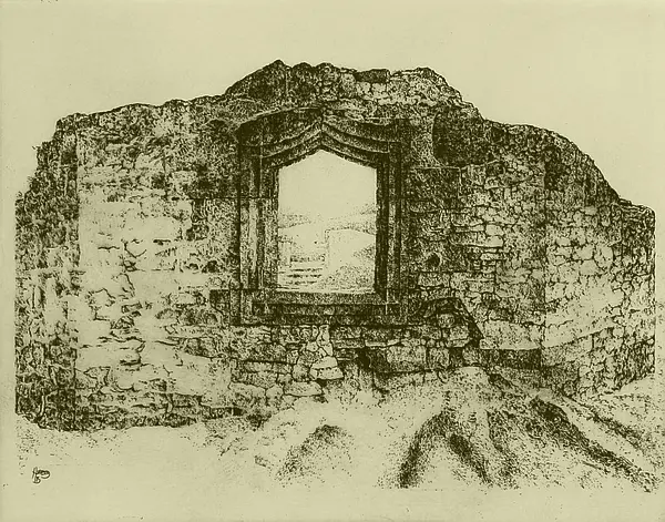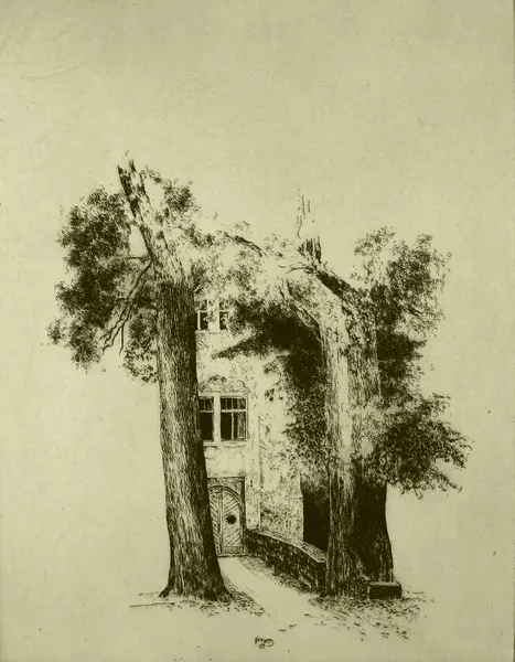 Walter Herzog, Radierung, Burgfriede, 2009, Bildformat 35,2 x 27,0 cm, Papierformat 48,5 x 39,0 cm