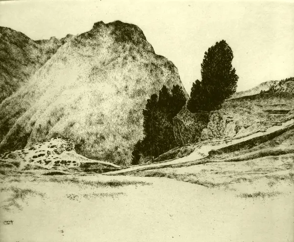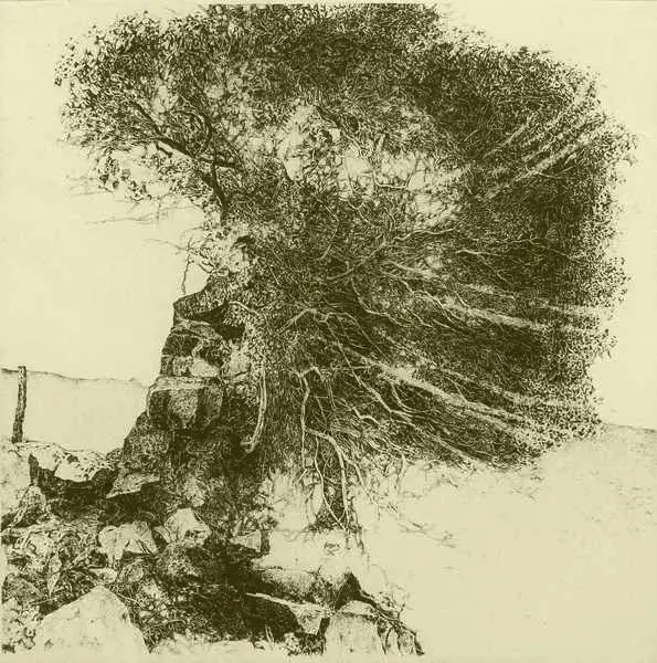 Walter Herzog, Radierung, Einsamer Baum, 2015, Bildformat 29,8 x 37,0 cm, Papierformat 39,0 x 49,0 cm