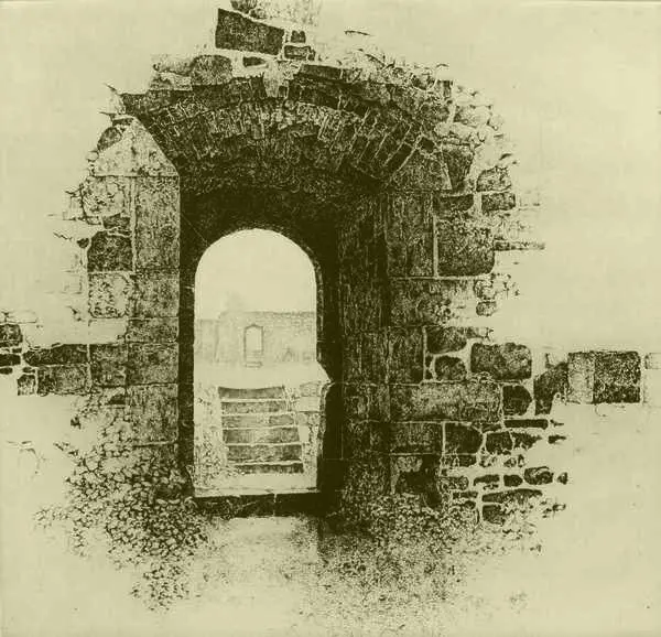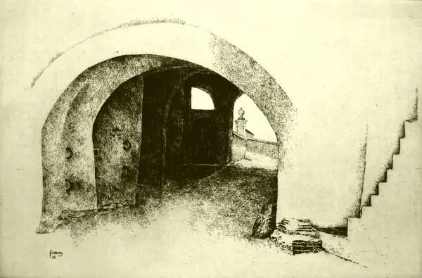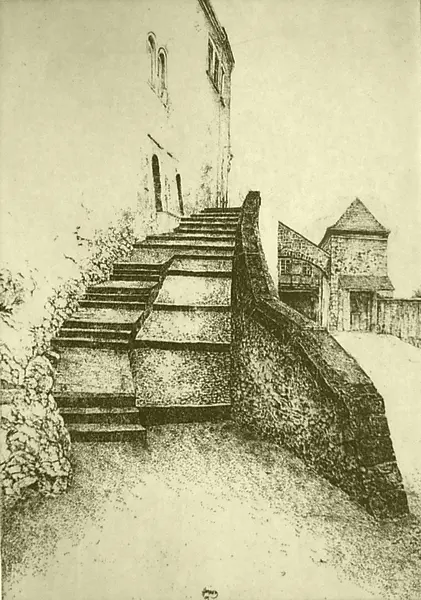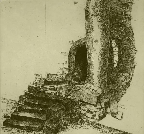 Walter Herzog, Radierung, Turmstufenpforte, 2007, Bildformat 28,0 x 30,0 cm, Papierformat 43,0 x 39,0 cm