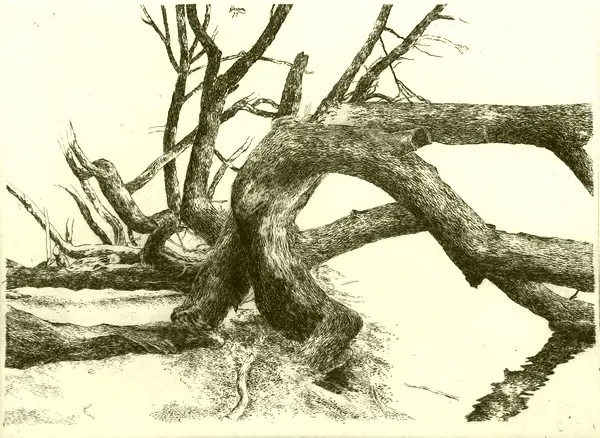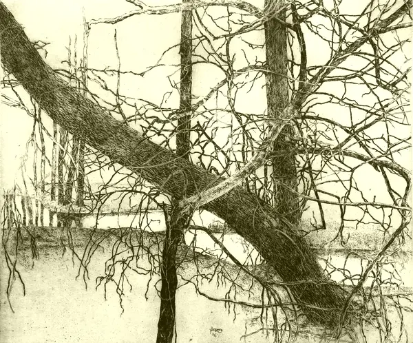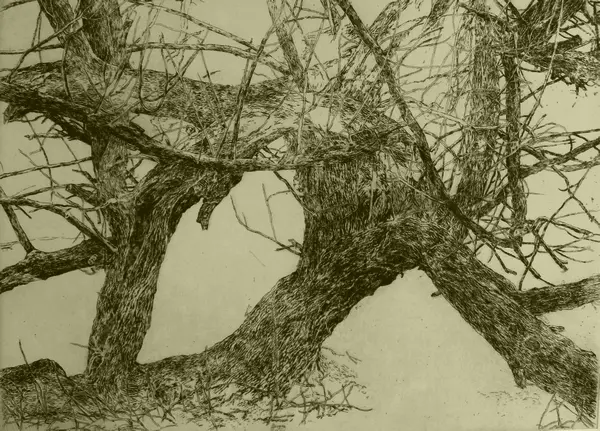 Walter Herzog, Radierung, Astgewirr, 2005, Bildformat 25,5 x 37,0 cm, Papierformat 39,5 x 49,5 cm