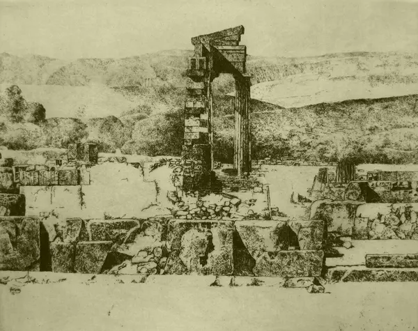 Walter Herzog, Radierung, Epidauros, 2012, Bildformat 29,8 x 37,0 cm, Papierformat 39,0 x 49,0 cm