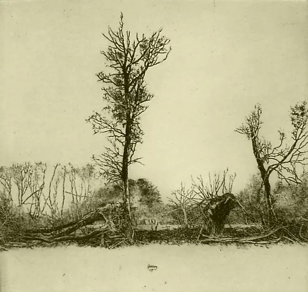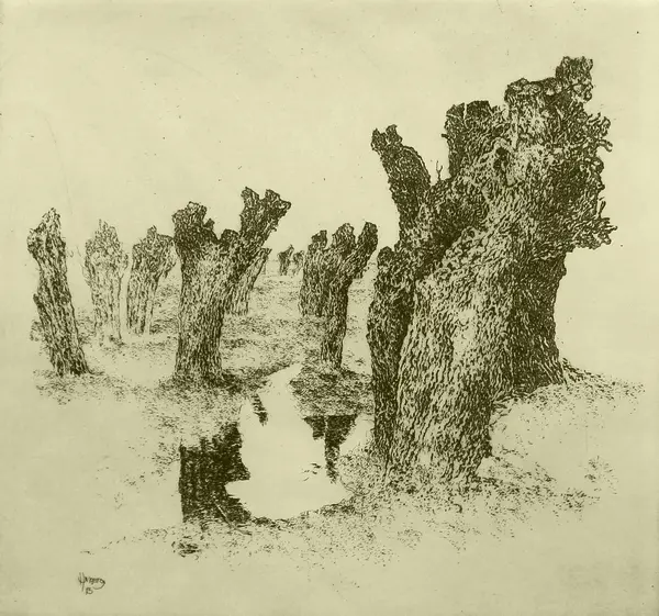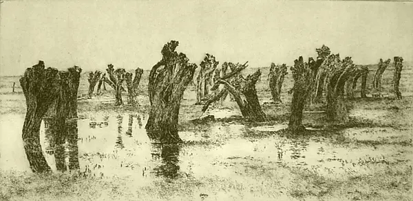 Walter Herzog, Radierung, Elbweide III, 2013, Bildformat 25,2 x 34,7 cm, Papierformat 39,0 x 43,0 cm