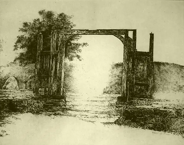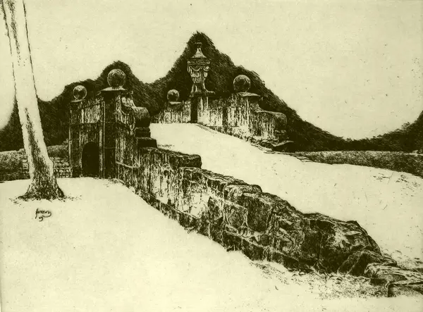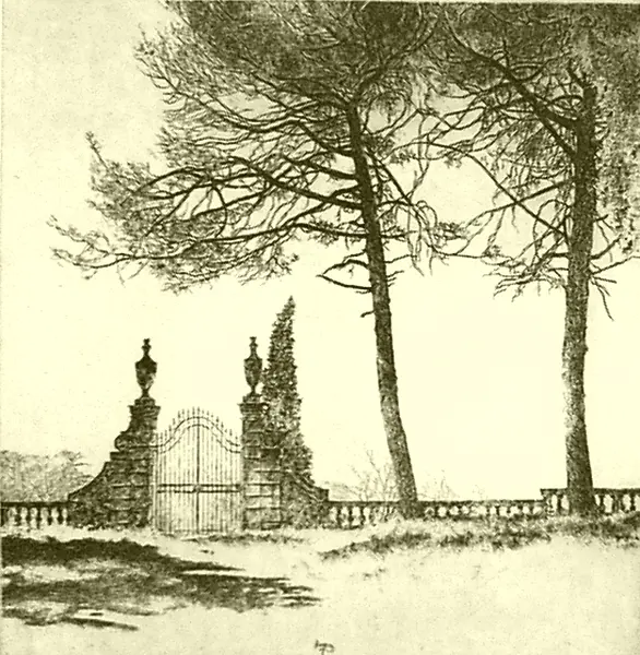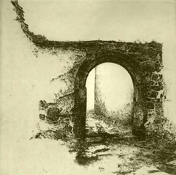 Walter Herzog, Radierung, Pforte in R., 2003, Bildformat 29,7 x 30,0 cm, Papierformat 43,0 x 39,0 cm