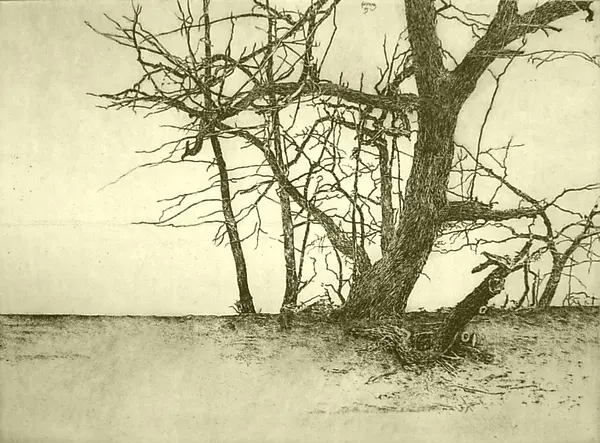 Walter Herzog, Radierung, Großer Strandwald, 2005, Bildformat 27,7 x 38,5 cm, Papierformat 39,5 x 48,5 cm