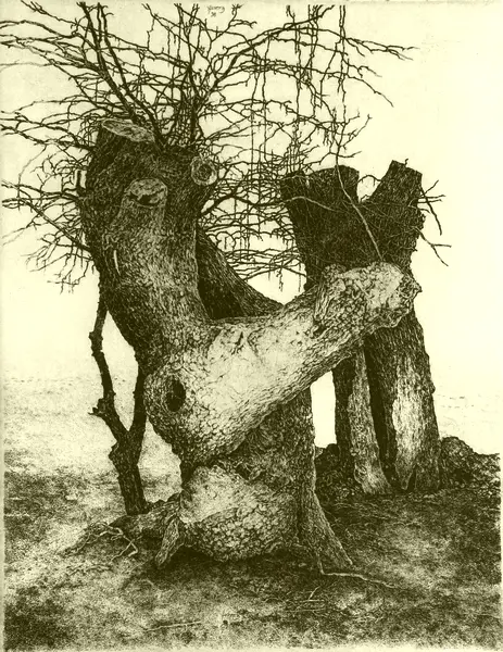 Walter Herzog, Radierung, Großes Weidenleben, 1998, Bildformat 35,7 x 27,6 cm, Papierformat 49,0 x 39,5 cm