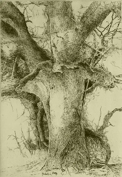 Walter Herzog, Radierung, Mächtige Eiche, 2015, Bildformat 36,8 x 25,5 cm, Papierformat 49,0 x 39,0 cm