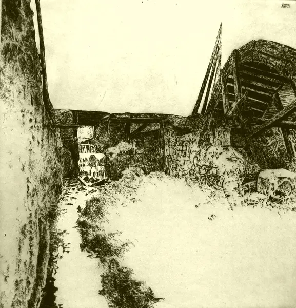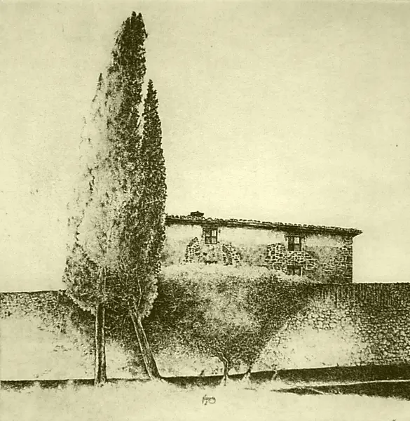 Walter Herzog, Radierung, Toskanisches Haus, 2002, Bildformat 29,3 x 28,7 cm, Papierformat 43,0 x 39,0 cm