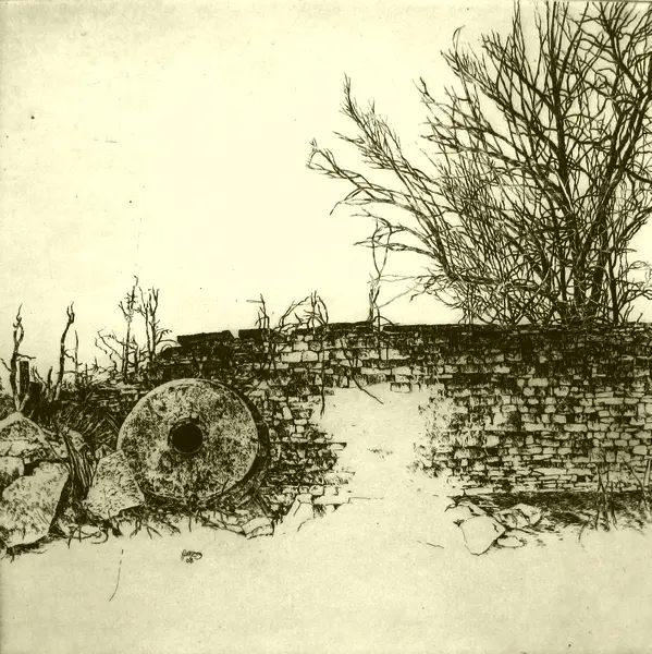 Walter Herzog, Radierung, Mühlstein, 2008, Bildformat 27,4 x 27,3 cm, Papierformat 43,0 x 39,0 cm