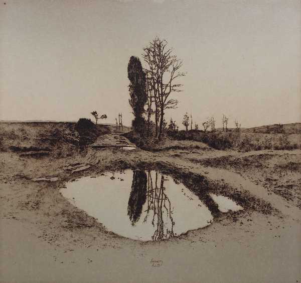 Walter Herzog, Radierung, Gegend bei G., 2007, Bildformat 26,4 x 27,8 cm, Papierformat 43,0 x 39,0 cm