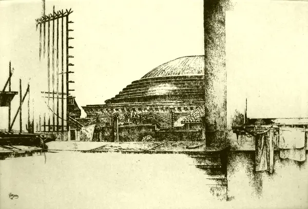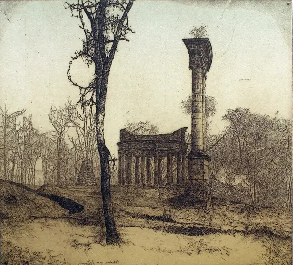 Walter Herzog, Radierung, Pantheon, 2008, Bildformat 24,3 x 35,7 cm, Papierformat 39,0 x 49,0 cm