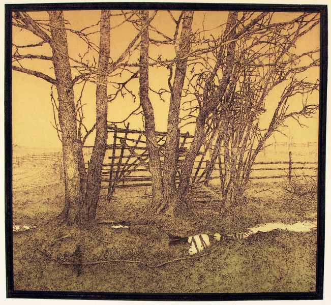 Walter Herzog, Radierung, Rattayweiden, 2015, Bildformat 26,5 x 28,3 cm, Papierformat 49,0 x 39,0 cm