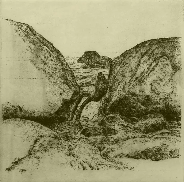 Walter Herzog, Radierung, Seesteine III, 2000, Bildformat 28,7 x 29,0 cm, Papierformat 43,0 x 39,0 cm