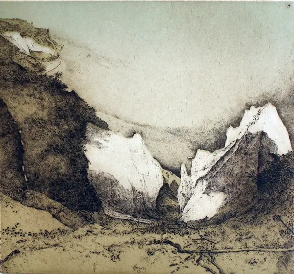 Walter Herzog, Radierung auf Farblithografie, Stubbenkammer II, 1983, Bildformat 21,0 x 22,5 cm, Papierformat 29,5 x 22,5 cm