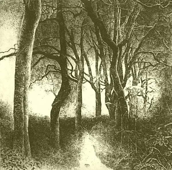 Walter Herzog, Radierung, Waldheimlichkeit, 2004, Bildformat 28,2 x 28,4 cm, Papierformat 43,0 x 39,0 cm